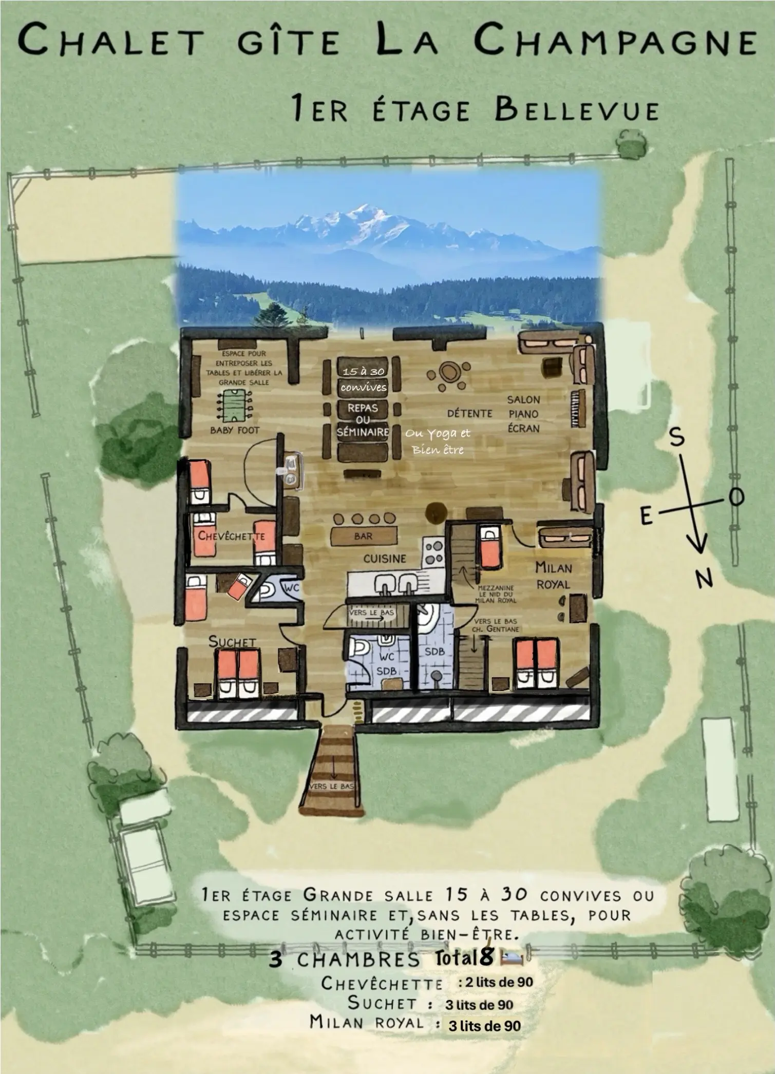 Notre chalet d’alpage offre une vue panoramique exceptionnelle sur le Mont Blanc et les Alpes, le Mont d’Or, les Crêtes du Jura franco-suisse et les vallées environnantes.Sur 15 hectares isolé mais proche des commodités, ce lieu privilégié invite à savourer le calme, l’authenticité et la beauté d’une nature préservée !