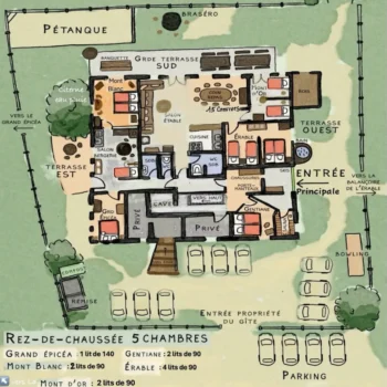 Au robinet de l’eau de pluie filtrée et traitée, en électricité des panneaux photovoltaïques, du chauffage au bois…Sur ce site privilégié, l’accueil en Gîtes et l’activité agricole sur les plantes Médicinales et les vaches qui pâturent contribuent à valoriser ce patrimoine et la flore de nos alpages…
