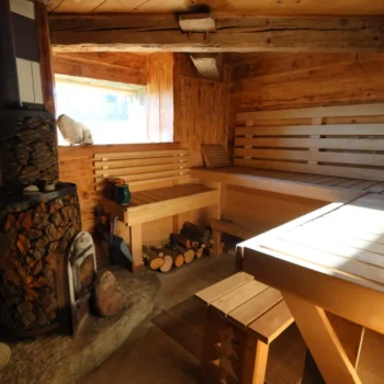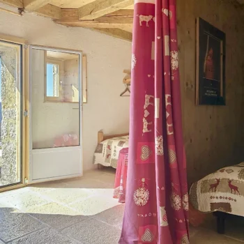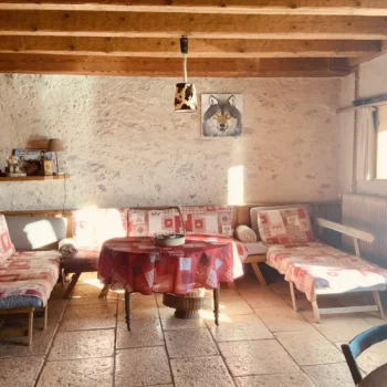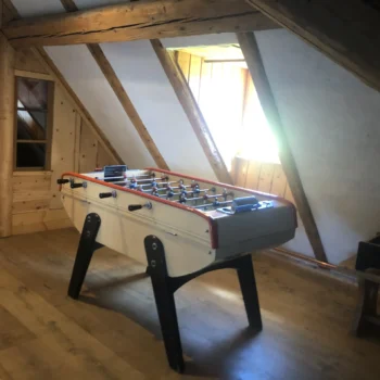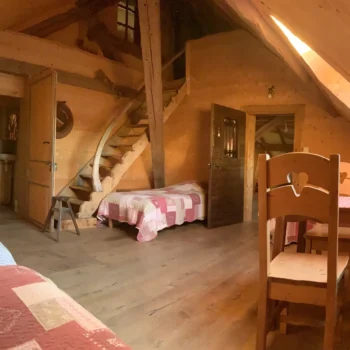 L’eau de pluie récupérée, grâce au toit d’un chalet annexe, dans une grande citerne est envoyée filtrée dans le chalet, eau courante au robinet mais pas de gaspillage et on n’est pas autorisé à la laisser boire donc prévoir d’apporter de l’eau minérale.